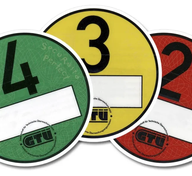Je nach Abgasverhalten des Fahrzeugs gibt es unterschiedliche Farben: